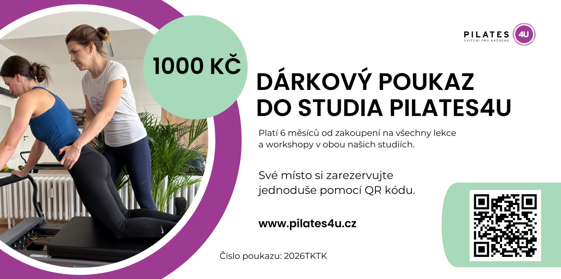 Dárkové poukazy v hodnotě 1000 Kč nebo 2000 Kč objednávejte přes e-mail olga@pilates4u.cz nebo prostřednictvím webového formuláře.
