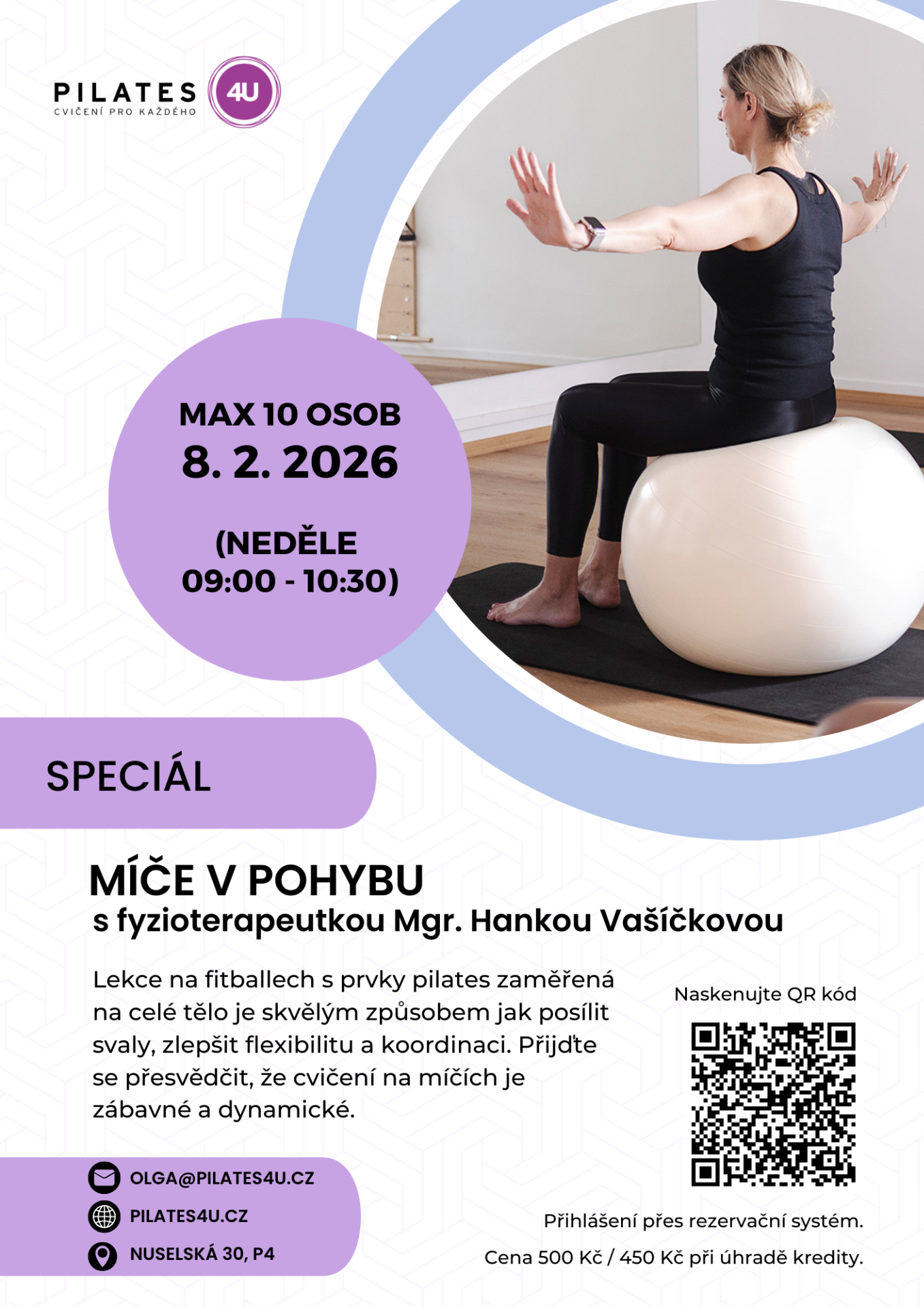 Individuální lekce vedená fyzioterapeutkou je ideální volbou pro každého, kdo řeší pohybová či zdravotní omezení, potřebuje cílený přístup nebo chce lépe porozumět svému tělu a základním principům zdravého pohybu.